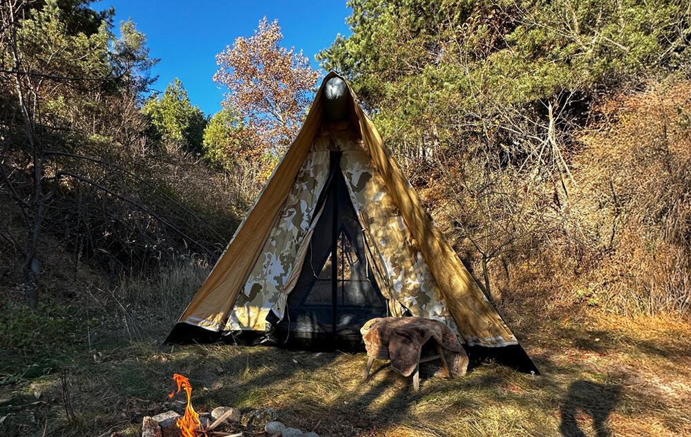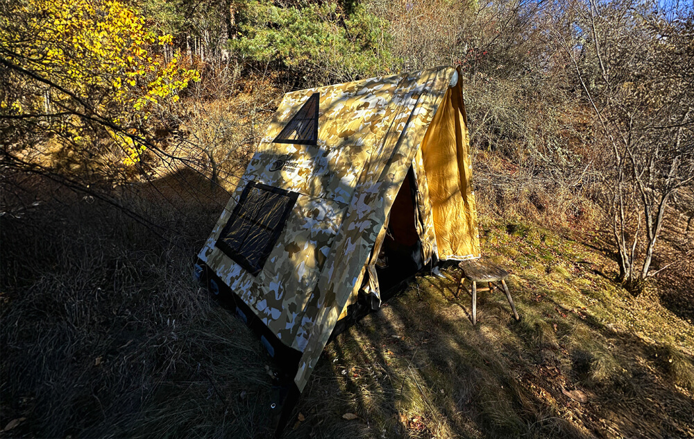 Fireproof Stove Mat (EXTRA OPTION): A fireproof mat designed to allow you to safely use a stove inside the tent, isolating the heat from the stove and protecting the ground. This adds extra safety and comfort during cold weather.