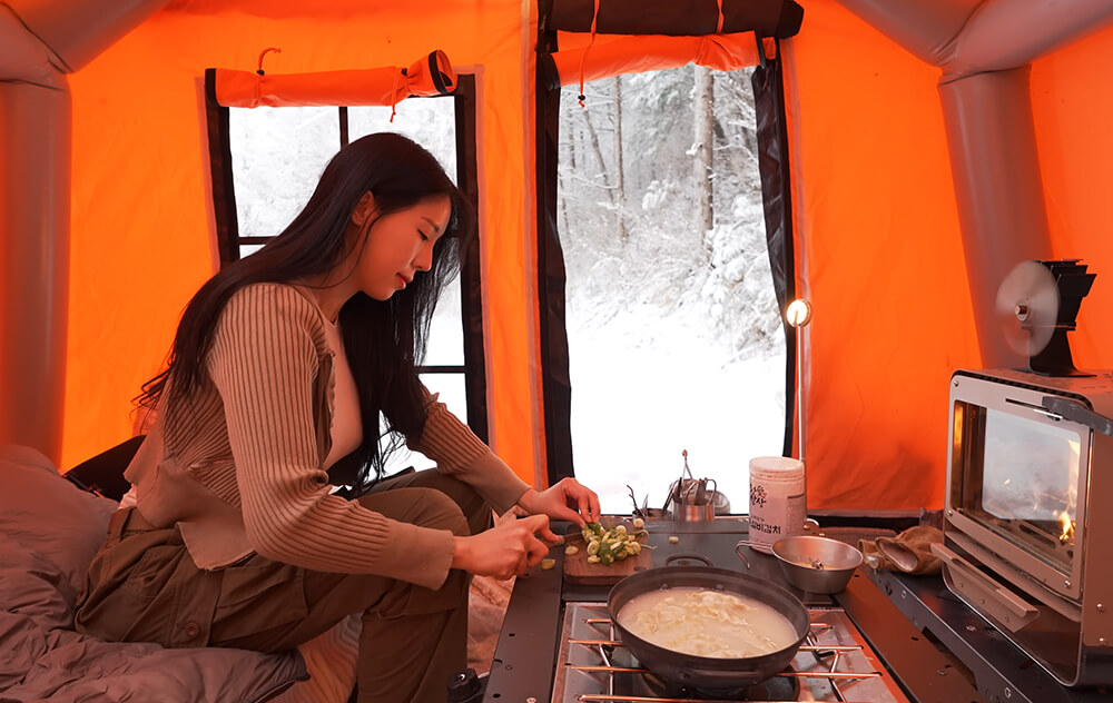 Fireproof Stove Mat (EXTRA OPTION): A fireproof mat designed to allow you to safely use a stove inside the tent, isolating the heat from the stove and protecting the ground. This adds extra safety and comfort during cold weather.