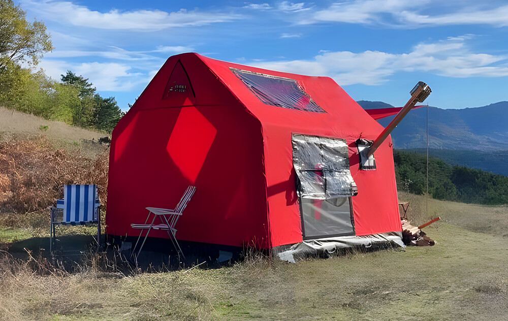 Fireproof Stove Mat (EXTRA OPTION): A fireproof mat designed to allow you to safely use a stove inside the tent, isolating the heat from the stove and protecting the ground. This adds extra safety and comfort during cold weather.