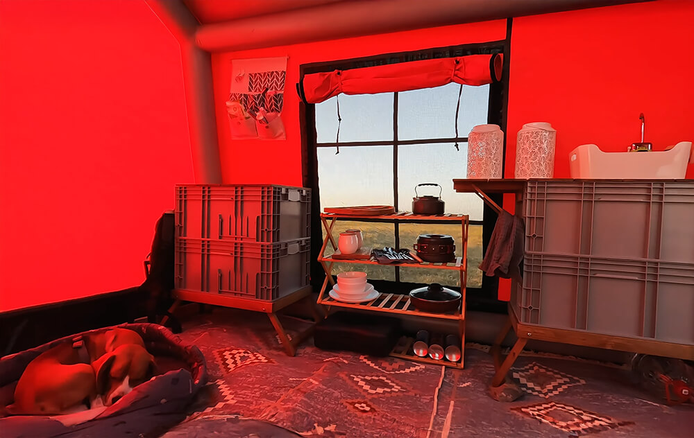 Cinema Screen (EXTRA OPTION): A cinema screen that can be integrated into the interior of the tent, allowing you to enjoy a cinema experience inside your tent at any time. It takes your camping enjoyment to the next level.