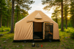 Non-Flammable Stove Mat (EXTRA OPTION): Designed to safely use a stove inside the tent, the non-flammable mat insulates the heat from the stove to protect the floor. This offers extra safety and comfort in cold weather.