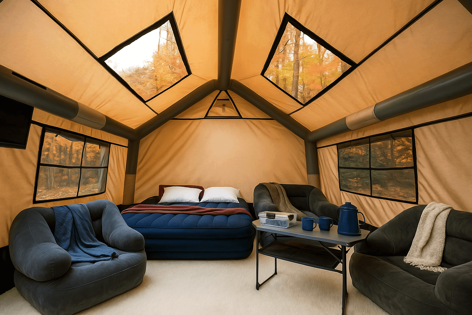 High-Performance Inflatable Structure – With inflatable beams, your tent is ready to set up within minutes. Enjoy your holiday with a strong and sturdy structure. Safety is our top priority, and our inflatable tents undergo rigorous testing.