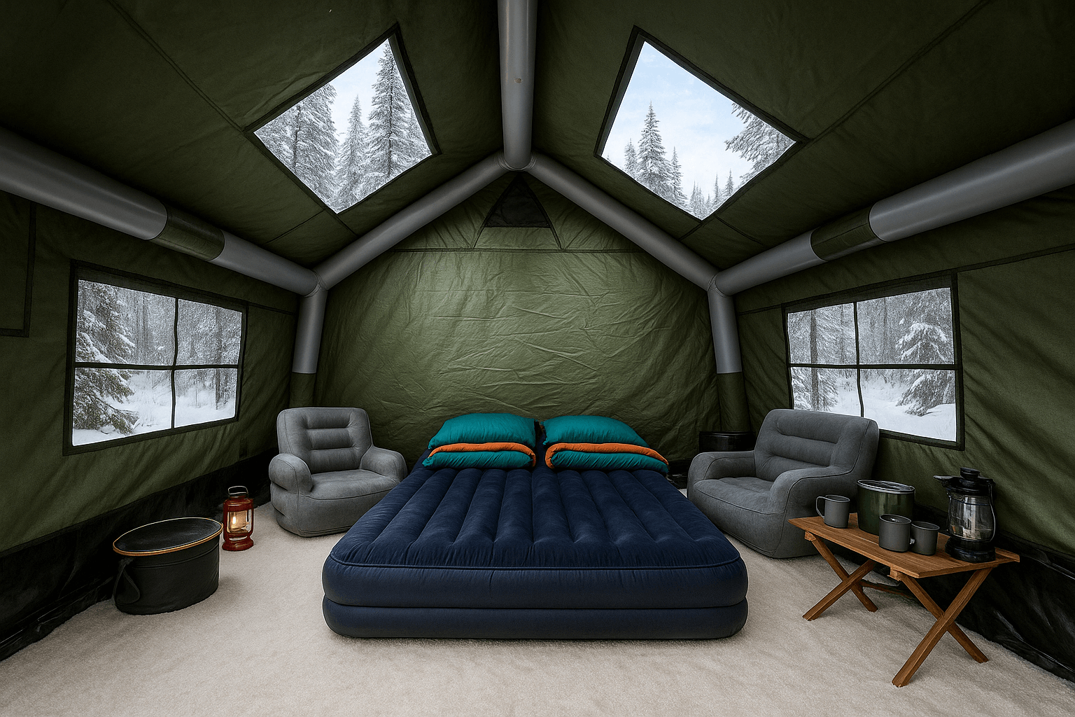 With its 100% waterproof fabric, robust inflatable frame, and stove jack, it can be used safely in all weather conditions. Its panoramic windows provide a bright, airy interior. What’s more, it sets up in just 5 minutes—no technical knowledge required.