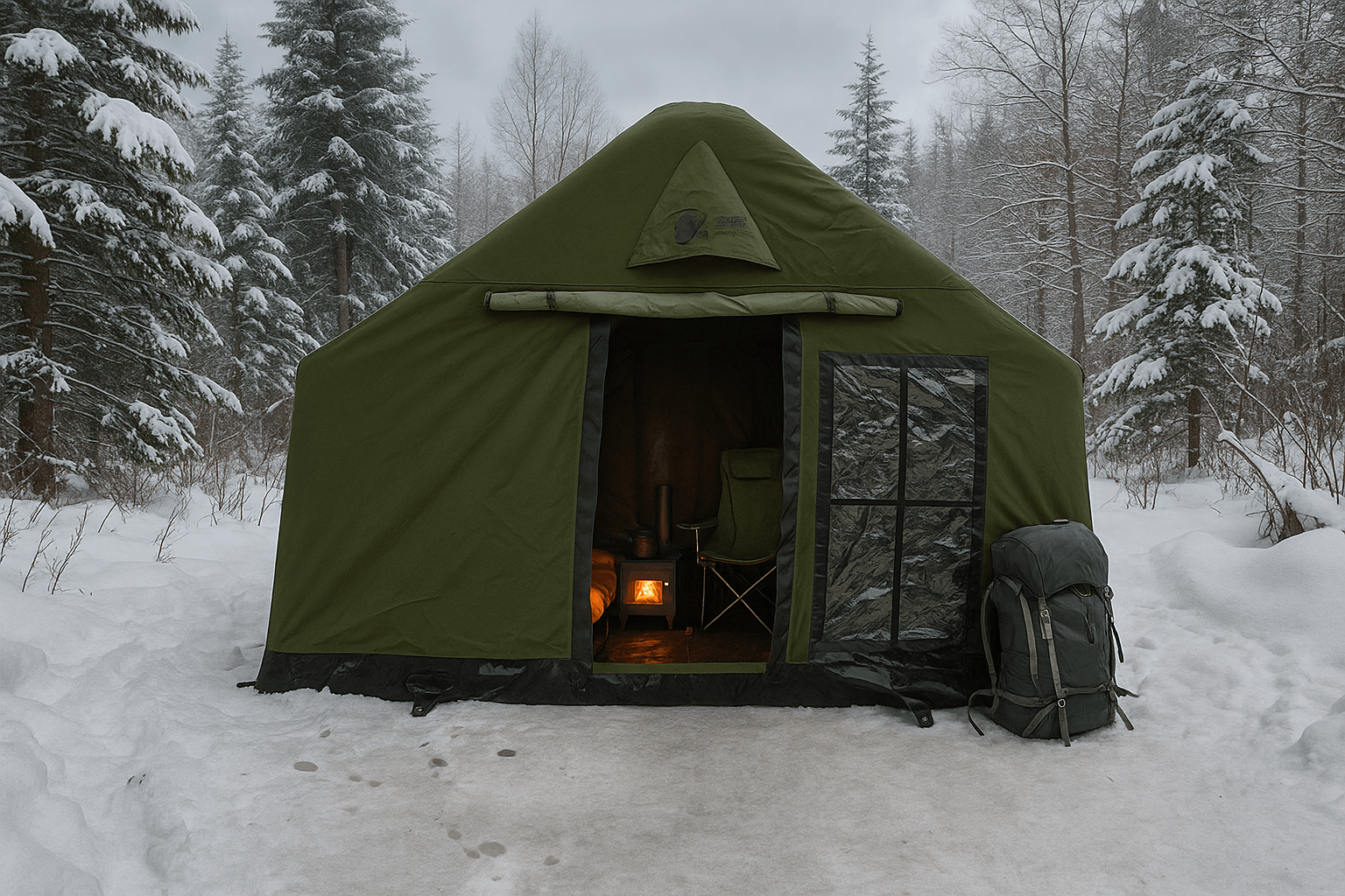 Non-Flammable Stove Mat (EXTRA OPTION): Designed to safely use a stove inside the tent, the non-flammable mat insulates the heat from the stove to protect the floor. This offers extra safety and comfort in cold weather.